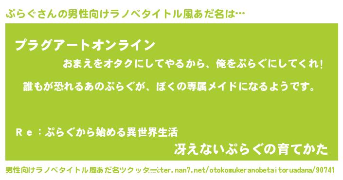 | ヘコむあだ名 | 『ぷらぐ(笑)』『ぷらにゅー』『牛乳』 |