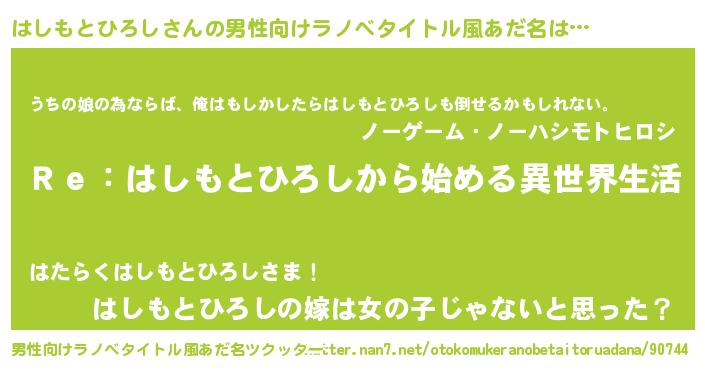 | 女子向けラノベタイトル風あだ名 | 『はしもとひろしストレイドッグス』 |