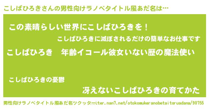 | 女子向けラノベタイトル風あだ名 | 『こしばひろきの玉の輿計画!』 |