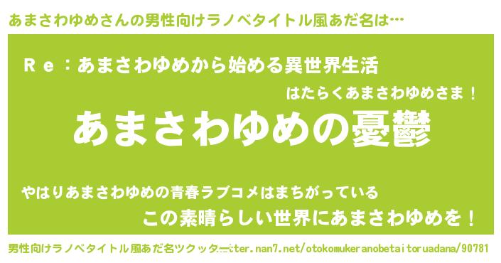| 女子向けラノベタイトル風あだ名 | 『(仮)あまさわゆめのやんごとなき事情』 |