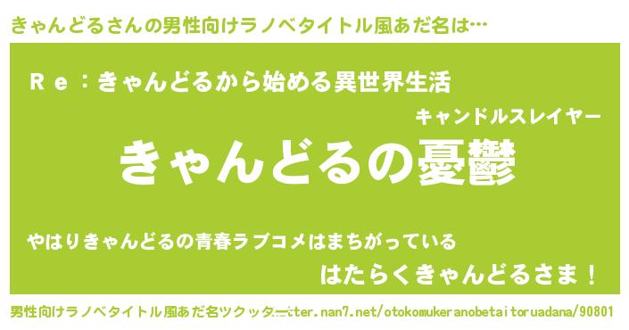 | 胡散臭い通販商品みたいなあだ名 | 『必ず成功するブレスレット…その名も「きゃんどる」』 |