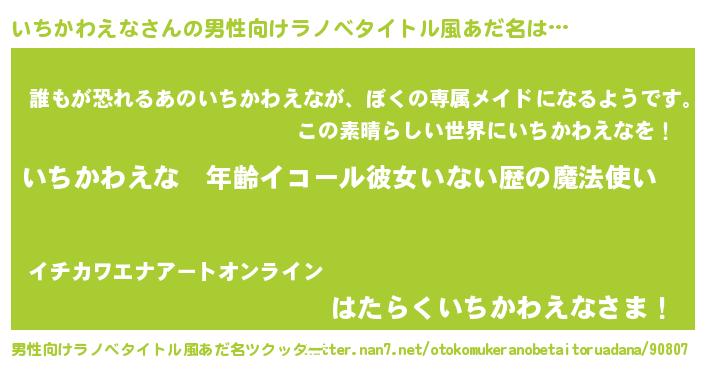 | 女子向けラノベタイトル風あだ名 | 『いちかわえなの玉の輿計画!』 |