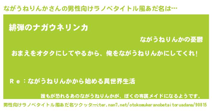 | 女子向けラノベタイトル風あだ名 | 『ながうねりんか夫妻のなれそめ』 |