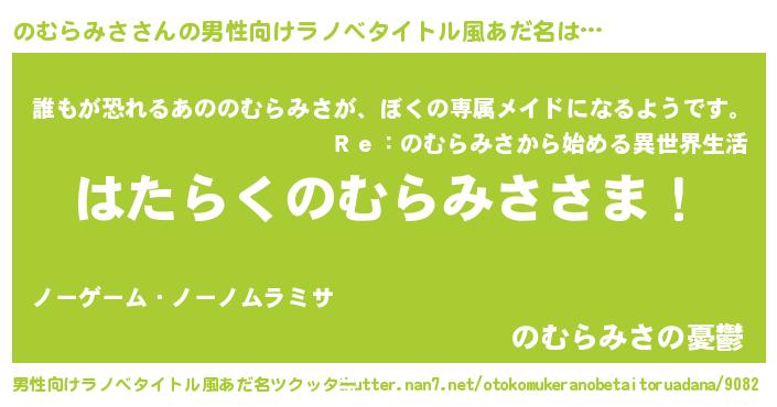 | 胡散臭い通販商品みたいなあだ名 | 『絶対に幸福をもたらす健康食品…その名も「のむらみさ」』 |