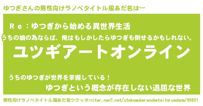 | 胡散臭い通販商品みたいなあだ名 | 『億万長者になれる霊験あらたかなお札…その名も「ゆつぎ」』 |