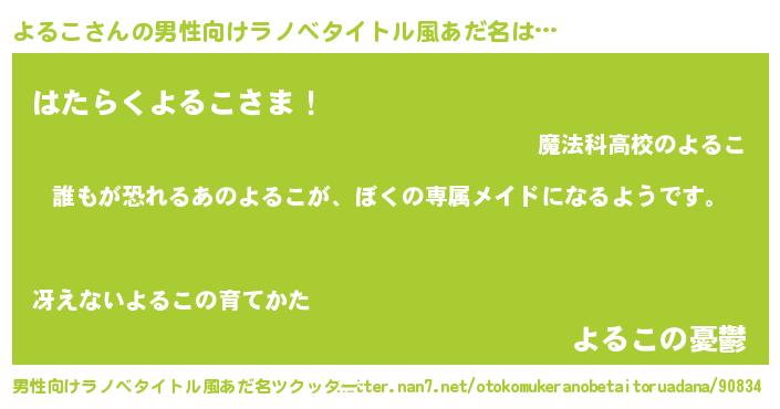 | 胡散臭い通販商品みたいなあだ名 | 『来世でも幸せになれる水素水…その名も「よるこ」』 |