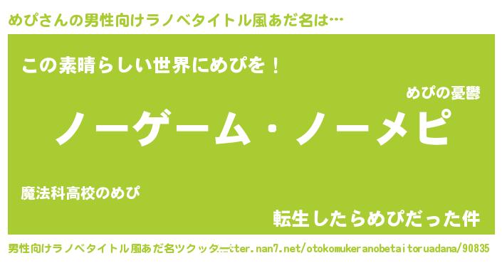 女子向けラノベタイトル風あだ名 | 『死神めぴの再婚』 |