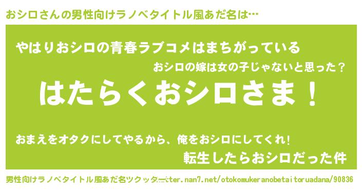 | 女子向けラノベタイトル風あだ名 | 『首の姫と首なしおシロ』『おシロ恋絵巻』 |