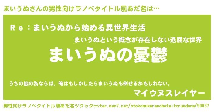 | 女子向けラノベタイトル風あだ名 | 『(仮)まいうぬのやんごとなき事情』 |
