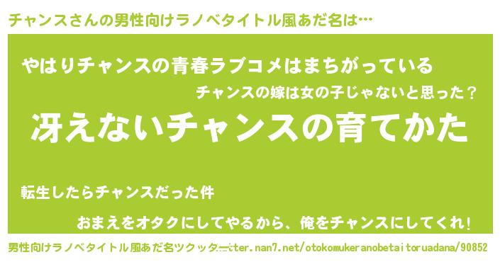 | 女子向けラノベタイトル風あだ名 | 『シンデレラチャンス家の靴箱館』 |
