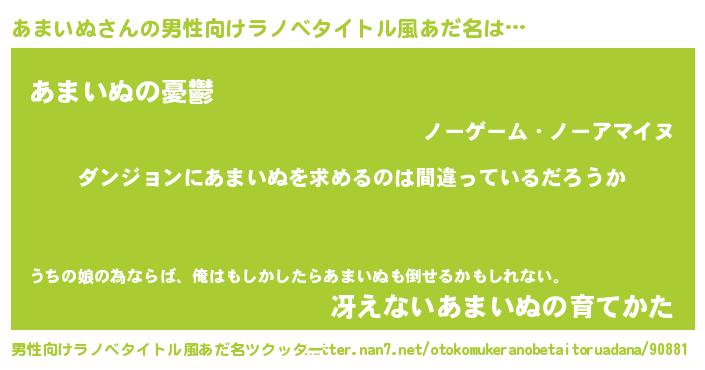 | 女子向けラノベタイトル風あだ名 | 『あまいぬの卵を拾いまして』 |