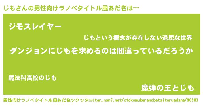| 女子向けラノベタイトル風あだ名 | 『じもは平凡を望む』『じもの契約王妃』 |