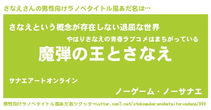 | 意味不明あだ名 | 『住所不定無職さなえ(95歳)』 |