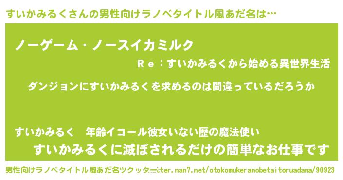 | 女子向けラノベタイトル風あだ名 | 『すいかみるくの卵を拾いまして』 |