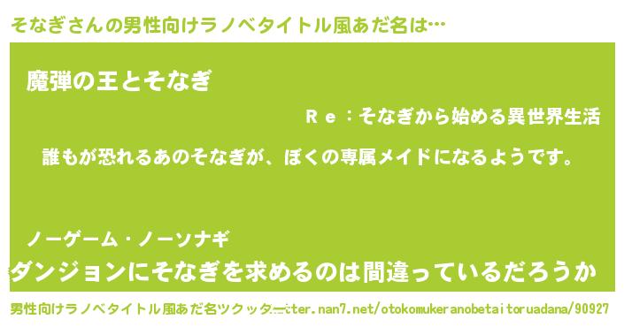 | 意味不明あだ名 | 『永久保存そなぎ』『自称そなぎ』 |