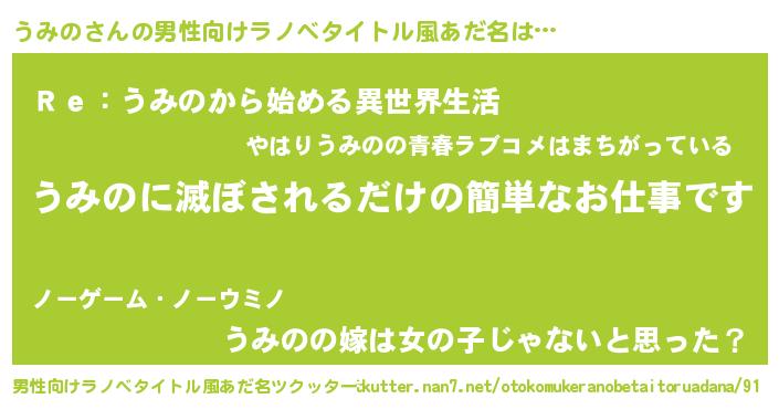 | ヘコむあだ名 | 『うみっ子』『なまこ酢』『うみにー』 |