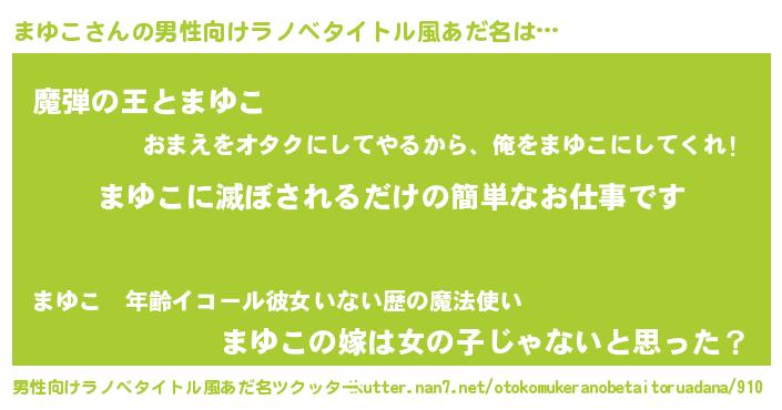 | 意味不明あだ名 | 『住所不定無職まゆこ(89歳)』 |