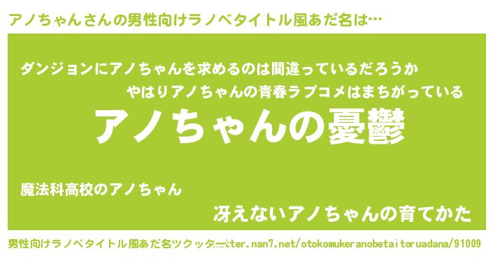 | 女子向けラノベタイトル風あだ名 | 『(仮)アノちゃんのやんごとなき事情』 |
