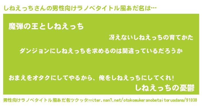 | 女子向けラノベタイトル風あだ名 | 『しねえっちは平凡を望む』 |