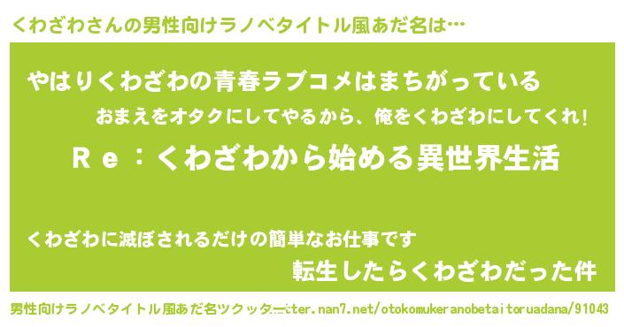 くわざわさんの男性向けラノベタイトル風あだ名をツクッター!