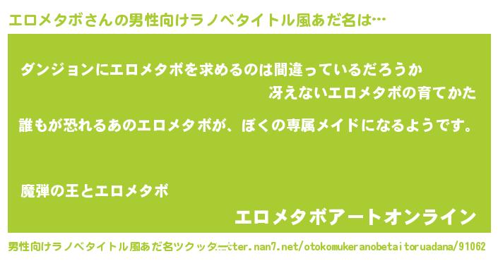 | 意味不明あだ名 | 『永久保存エロメタボ』『自称エロメタボ』 |