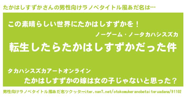 | 女子向けラノベタイトル風あだ名 | 『たかはしすずかの玉の輿計画!』 |