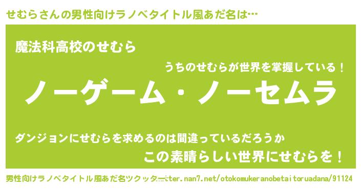 | 意味不明あだ名 | 『眠気覚ましガムせむら味』『自称せむら』 |