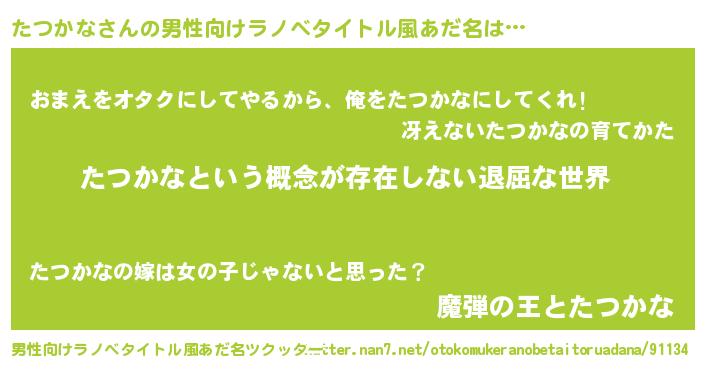 | 胡散臭い通販商品みたいなあだ名 | 『絶対に幸福をもたらす水素水…その名も「たつかな」』 |