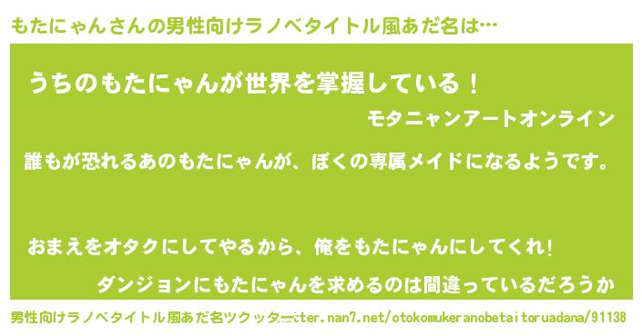 | 伝説のあだ名 | 『古文書に記された暗殺者もたにゃん』 |