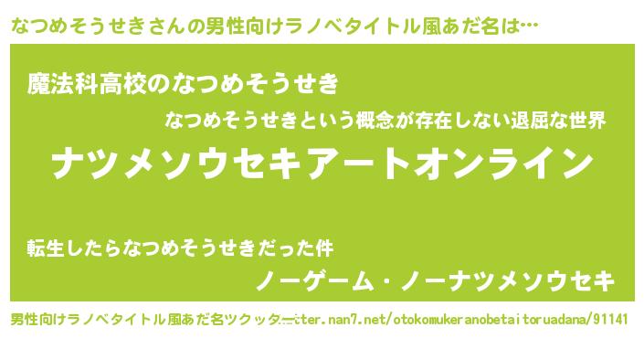 | 女子向けラノベタイトル風あだ名 | 『なつめそうせき姫と円卓の騎士』 |