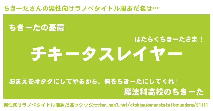 | 胡散臭い通販商品みたいなあだ名 | 『必ず成功する霊験あらたかなお札…その名も「ちきーた」』 |