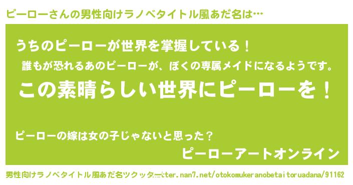 | 意味不明あだ名 | 『住所不定無職ピーロー(81歳)』 |