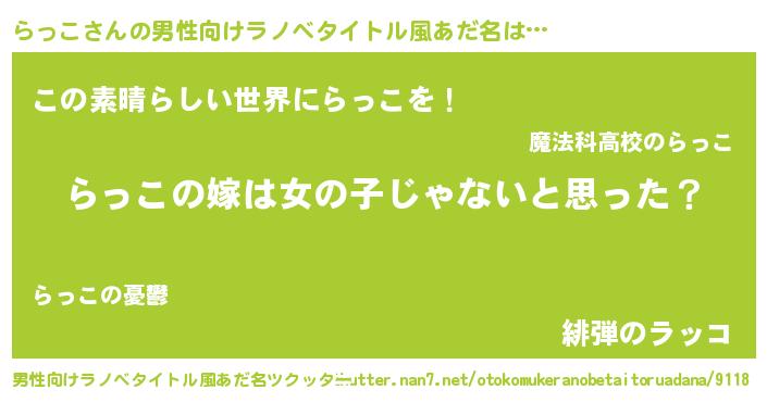 | 女子向けラノベタイトル風あだ名 | 『らっこ様がみてる』 |