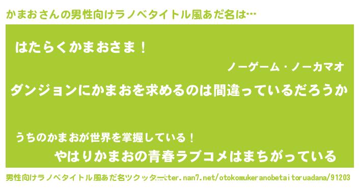 | ヒーロー風カッコイイあだ名 | 『暗黒騎士カマ』『ウルトラかまおマン』 |