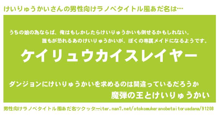 | ヒーロー風カッコイイあだ名 | 『ウルトラけいりゅうかいマン』 |
