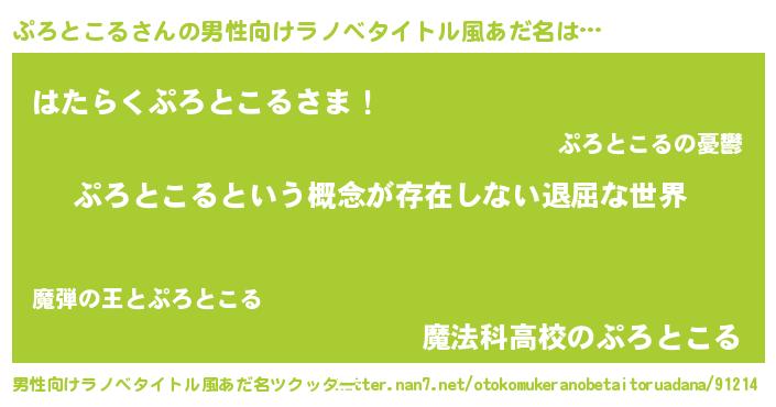 | ヘコむあだ名 | 『ぷろとこる(笑)』『ぷろふぇ~』 |
