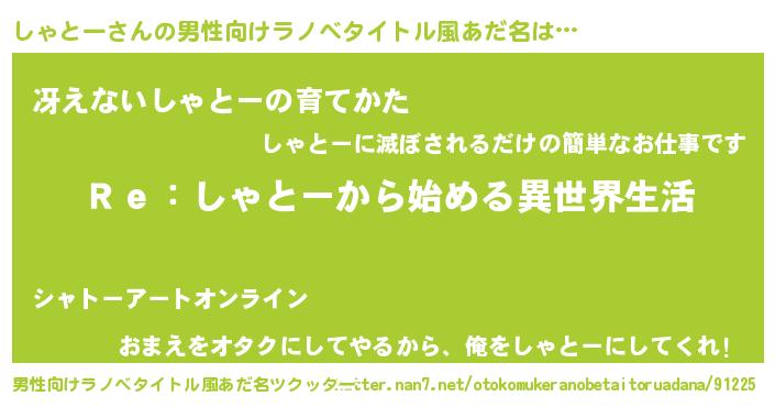 | 女子向けラノベタイトル風あだ名 | 『闇のしゃとー』『しゃとー恋絵巻』 |