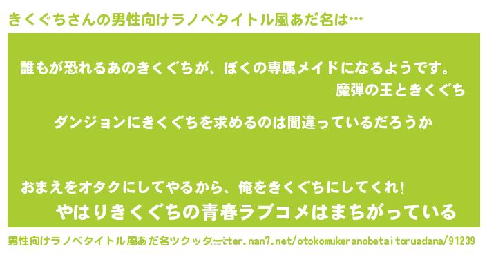 | 女子向けラノベタイトル風あだ名 | 『きくぐちは平凡を望む』 |