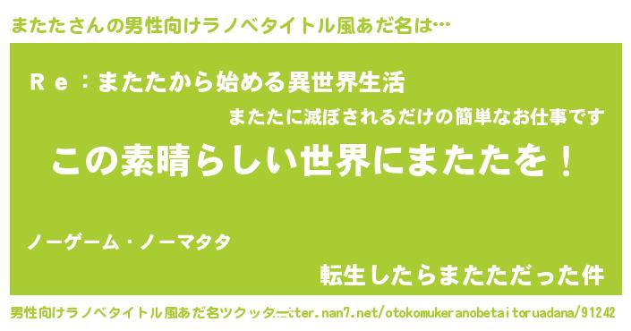 | 女子向けラノベタイトル風あだ名 | 『悪役またたに転生したようですが、知った事ではありません』 |