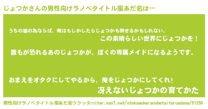 | ヘコむあだ名 | 『じょつか(爆)』『牛乳』『じょお』 |