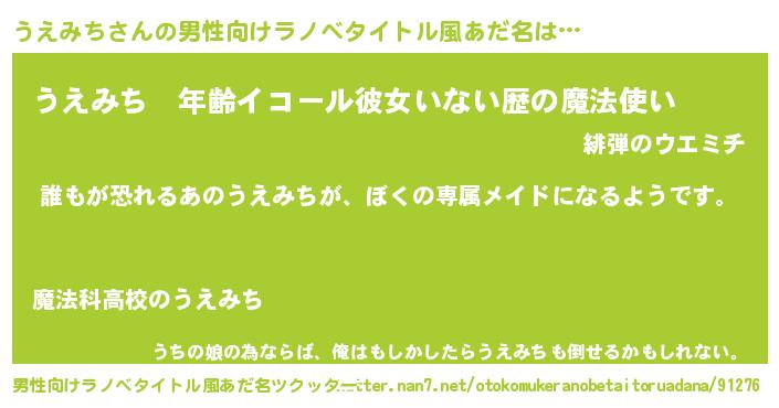 | 女子向けラノベタイトル風あだ名 | 『異世界でカフェうえみちを開店しました。』 |