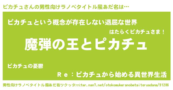 | 意味不明あだ名 | 『住所不定無職ピカチュ(1歳)』 |