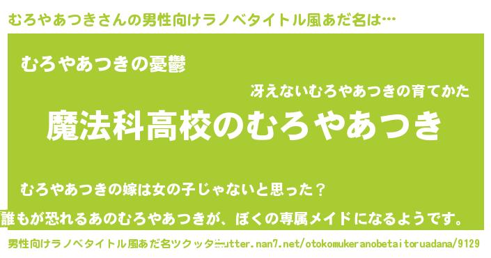 | 女子向けラノベタイトル風あだ名 | 『むろやあつきなんてお断りですっ。』 |