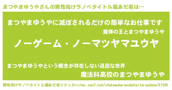 | 女子向けラノベタイトル風あだ名 | 『死神まつやまゆうやの再婚』 |