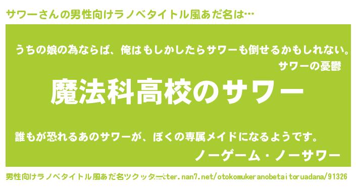 | ファンタジー風あだ名 | 『ゼサワトゥ』『エターナルサワーー』 |