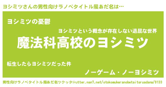 | 女子向けラノベタイトル風あだ名 | 『ヨシミツなんてお断りですっ。』 |