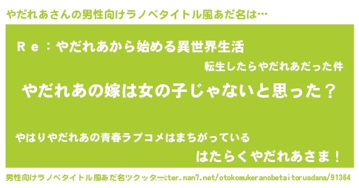 | 女子向けラノベタイトル風あだ名 | 『やだれあ様がみてる』 |