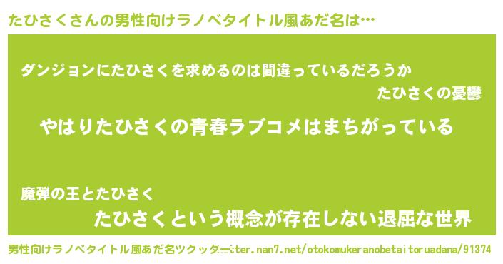 | 女子向けラノベタイトル風あだ名 | 『たひさくの雑貨屋さん』 |
