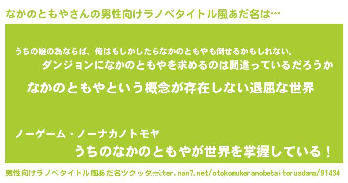 | 女子向けラノベタイトル風あだ名 | 『異世界で失敗しない100のなかのともや』 |