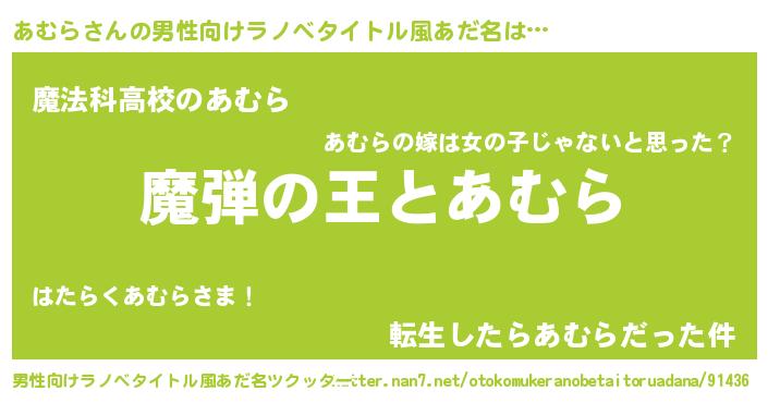 | 女子向けラノベタイトル風あだ名 | 『あむらが死なない童話 林檎のあむらの診療簿』 |